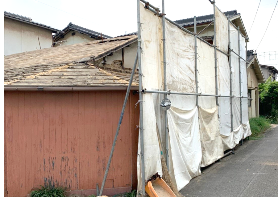 屋根瓦の撤去を行います。
